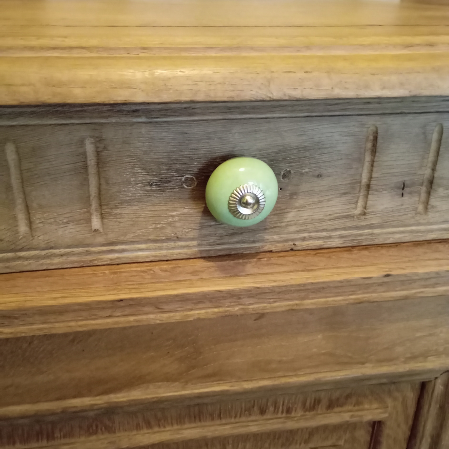 Poignées boutons en porcelaine verte et fermeture à clef pour les portes