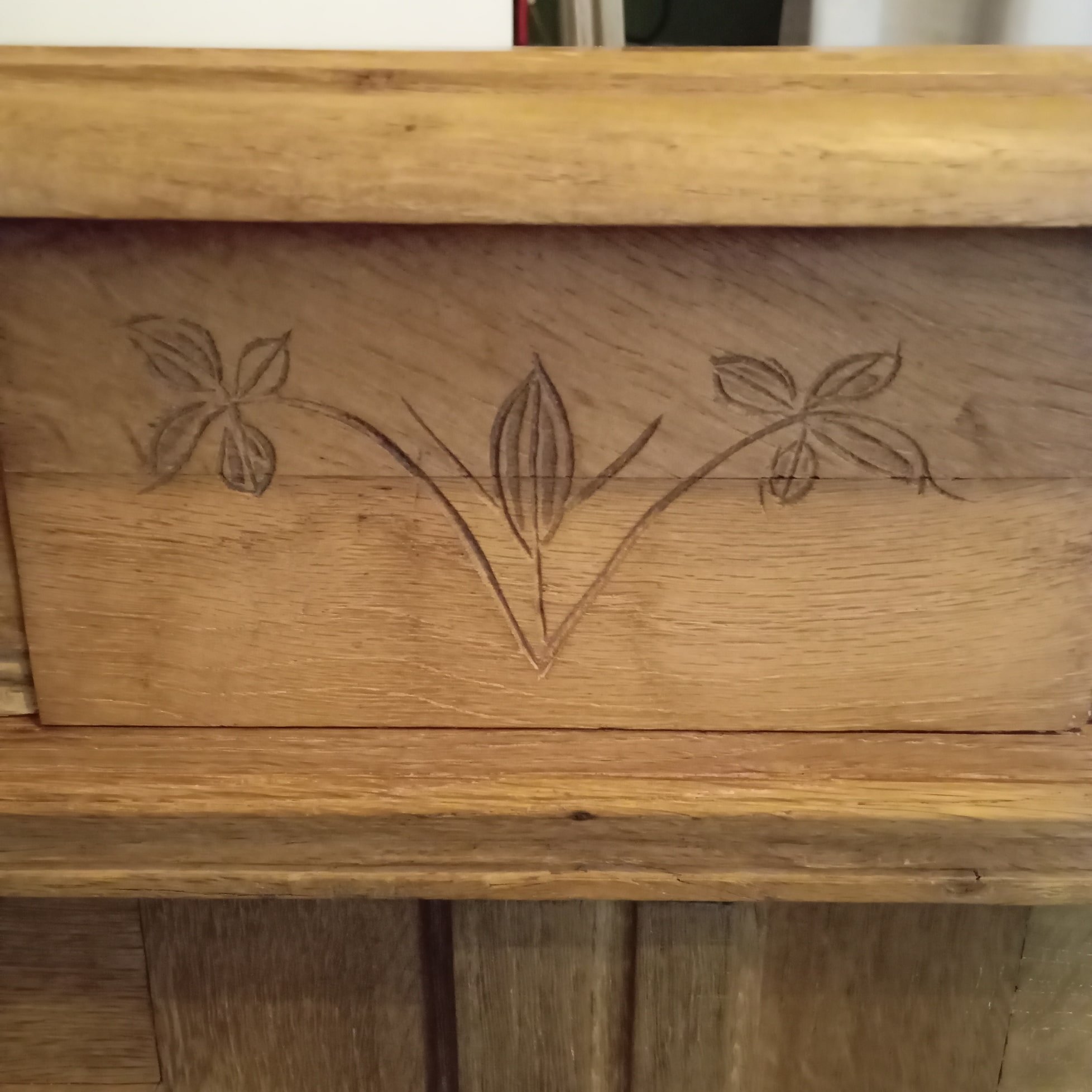 Entièrement sablé, il dévoile son joli veinage et ses nuances de teintes. Il est composé de deux tiroirs et d’une double porte avec étagère offrant une grande possibilité de rangement.