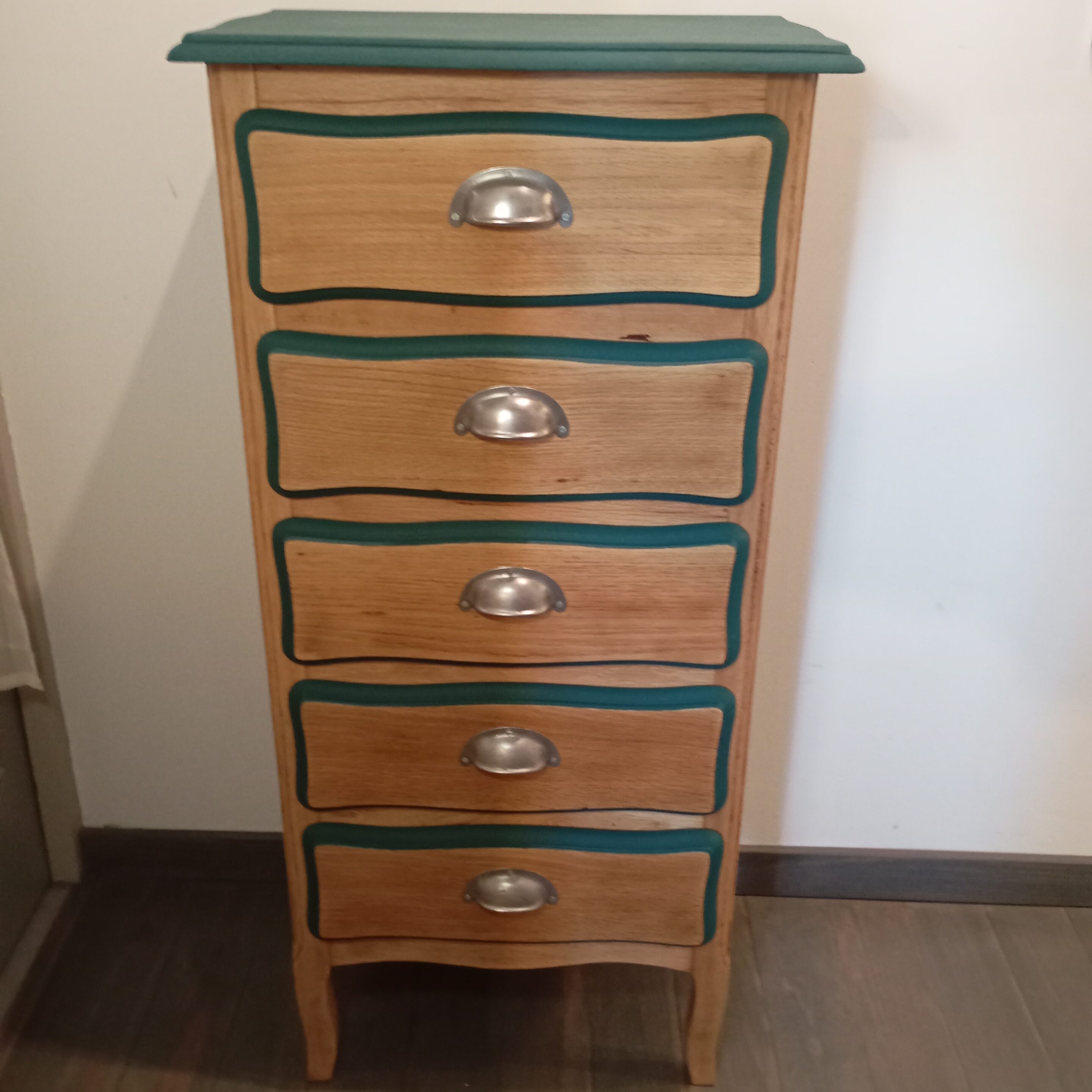 Ajoutez une touche de couleur et de style à votre intérieur avec ce joli chiffonnier en bois. Parfait pour les espaces réduits, il est idéal pour organiser vos affaires tout en apportant une décoration originale. Ses cinq tiroirs vous offriront une solution de rangement efficace et il s’intègrera facilement dans n’importe quelle pièce.